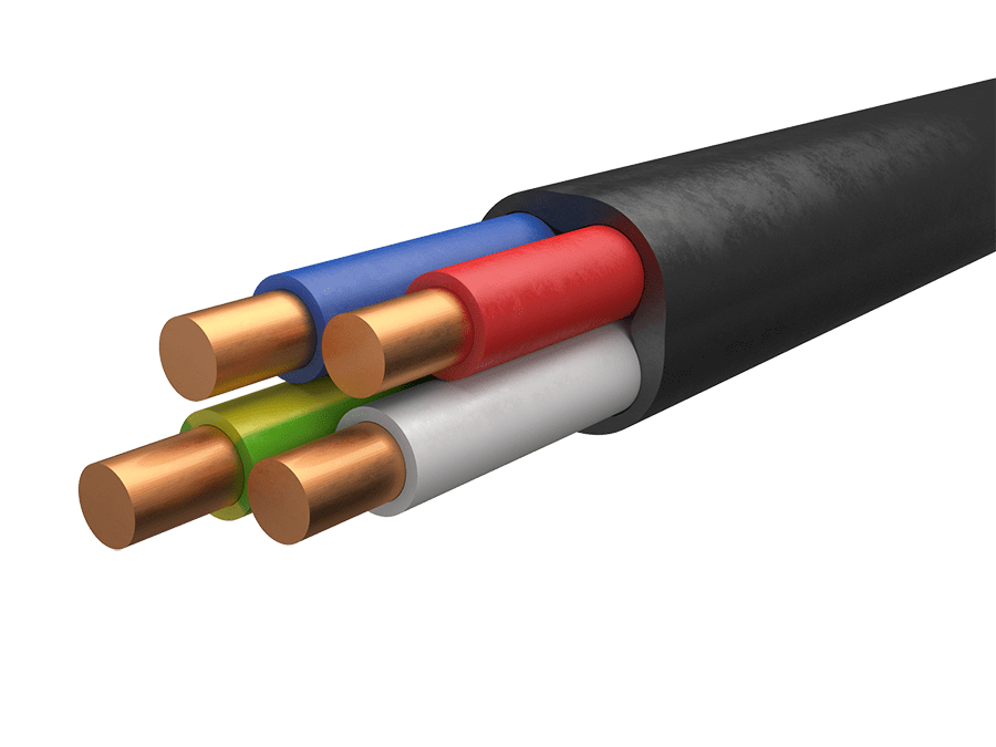 Кабель силовой ВВГ преимущественно с монолитными медными токопроводящими жилами, производящийся в ПВХ-изоляции и в ПВХ-оболочке.