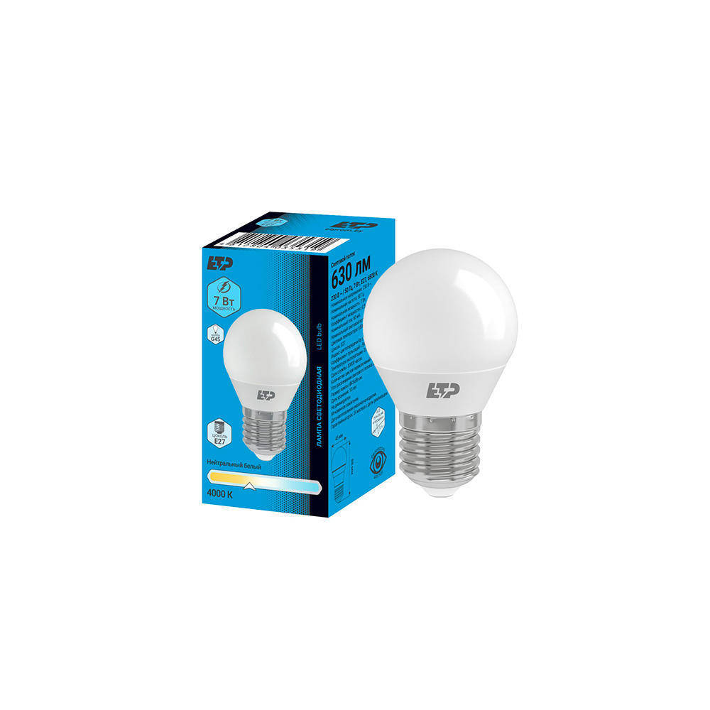 Лампа светодиодная G45 7W 6500K E27 ETP– светотехническое оборудование, в котором в качестве источника света выступают светодиоды (LED). Предназначены для освещения любых типов помещений, где соблюдены эксплуатационные требования по температуре и влажности. Могут применяться в светильниках любых типов, подходящих по размеру и цоколю. Светодиодное освещение является энергоэффективным и экологичным аналогом энергосберегающих люминесцентных источников света и ламп накаливания.