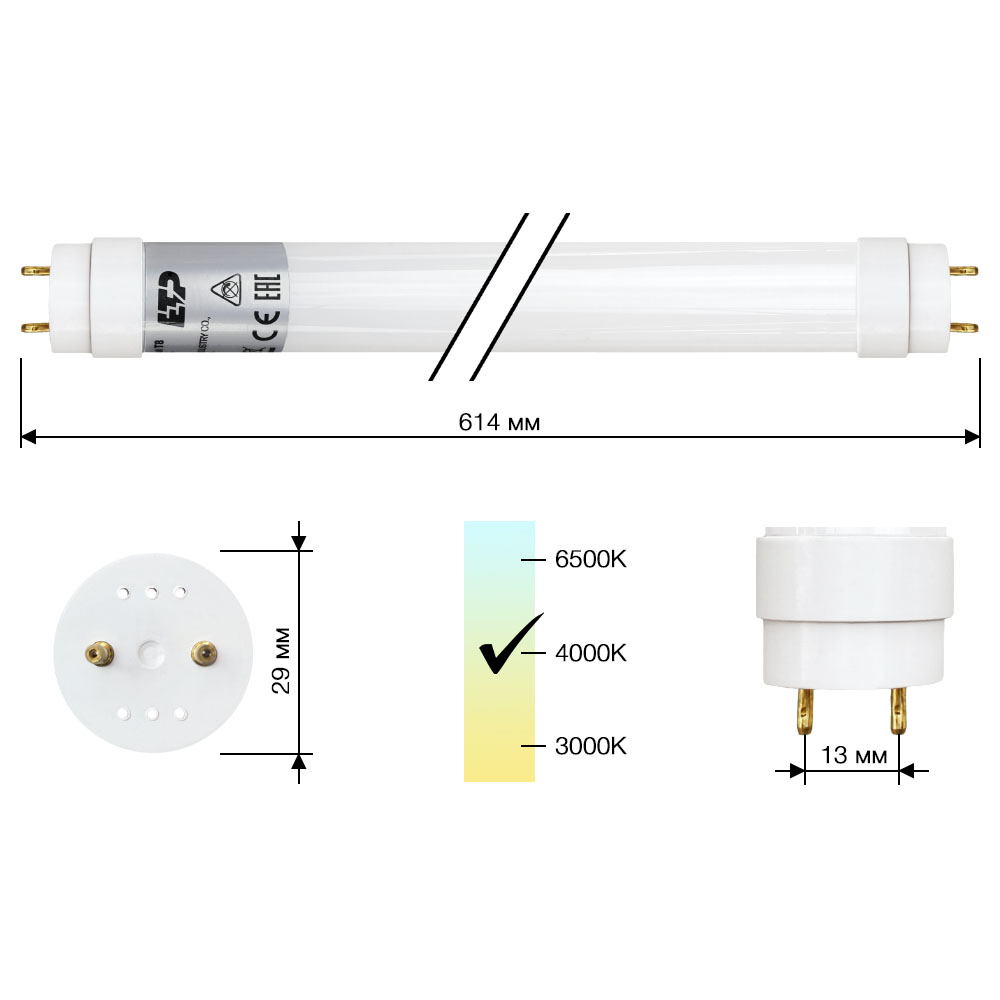 Светодиодная лампа T8 9W 4000K модели LED-T8-G13-ST ETP – современный источник света, успевший заслужить доверие покупателей, став улучшенным аналогом люминесцентной лампы. Представляет собой трубку 614мм из матового стекла, внутри которой расположены драйвер и светодиодная лента. Лампа T8 от ETP обеспечивает европейское качество, сочетая в себе доступную цену и отличные характеристики.