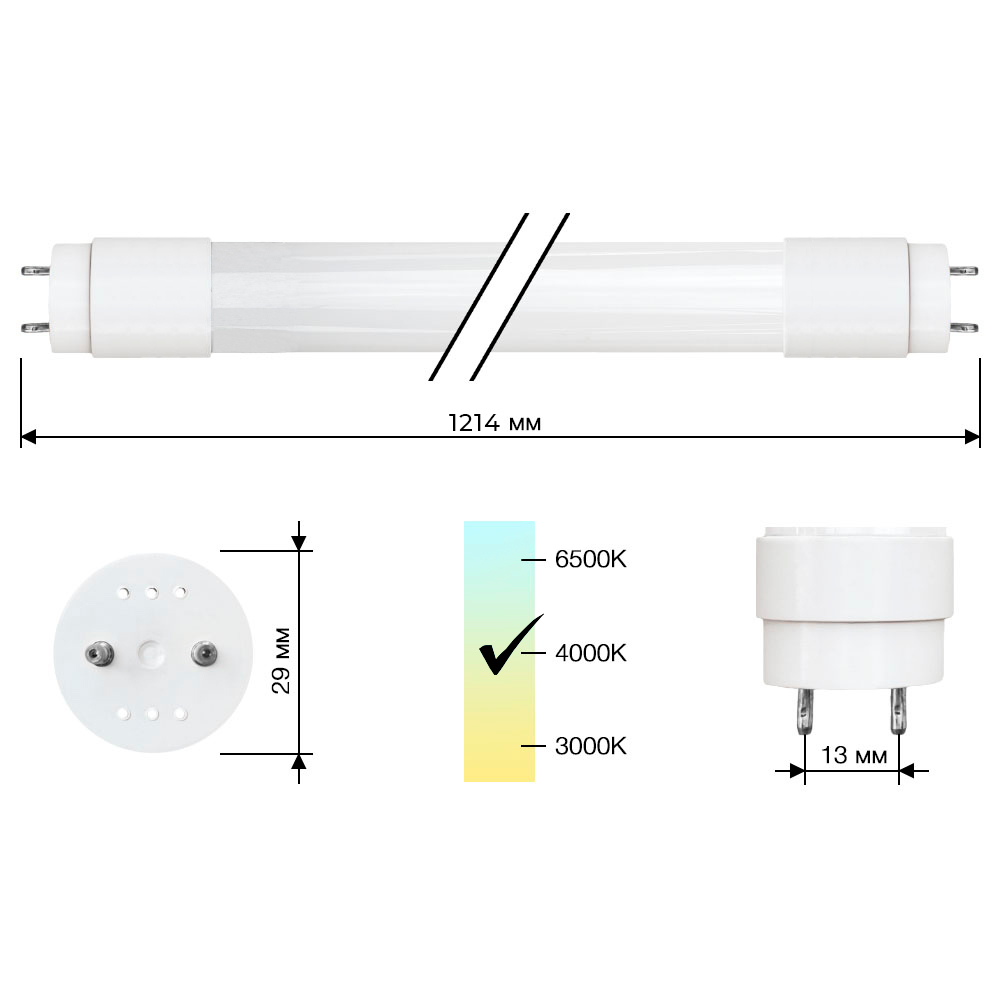 Лампы LED-T8-G13-ST используются при переходе с люминесцентного на светодиодное освещение. Форма и стандартные размеры серии (600мм, 1200мм, 1500мм) идеально подходят для вставки в светильники старого типа, что позволяет сэкономить немало средств. Встроенный драйвер позволяет подключать лампу Т8 напрямую, без ПРА.