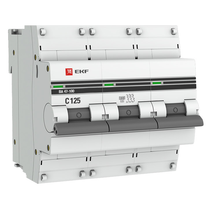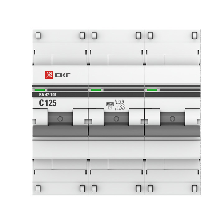 Модульные автоматические выключатели серии ВА 47-100 EKF являются механическими коммутационными аппаратами. Применяются в административных, промышленных и жилых сооружениях для проведения тока в нормальном режиме, оперативного управления участками электрических цепей, служат в качестве основного элемента системы конечного распределения и выполняют защиту установок от перегрузок, коротких замыканий и сверхтоков, обеспечивая их надежную и безопасную эксплуатацию. Автоматические выключатели серии ВА 47-100 EKF оборудованы удобной ручкой управления, обеспечивающей безотказное оперирование изделиями. На лицевой панели выключателей имеется цветовой индикатор состояния. Конструкция установочного зажима облегчает установку выключателя на DIN-рейку. Характеризуютя увеличенной наибольшей отключающей способностью не менее 10 кА - это максимально возможный ток короткого замыкания, при возникновении которого автоматический выключатель сможет отключить защищаемую им цепь и остаться при этом работоспособным.