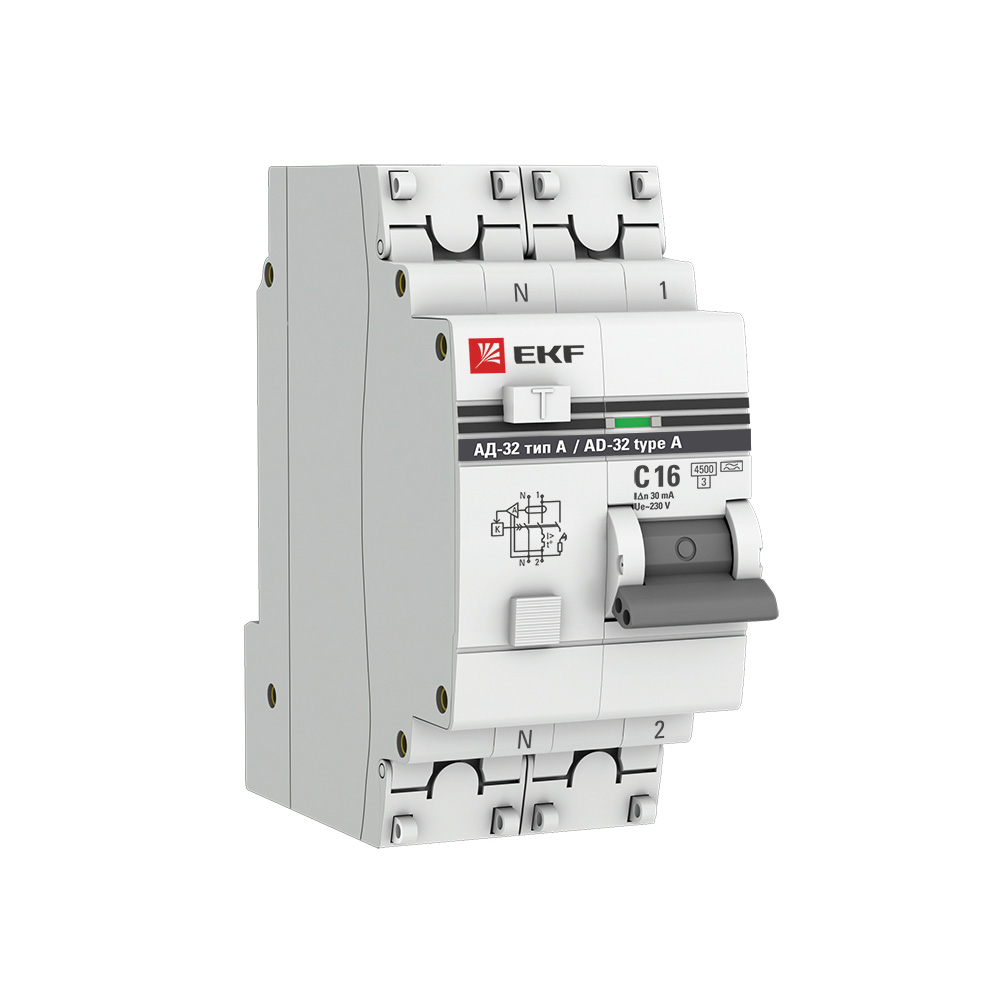 Дифференциальный автоматический выключатель серии АД-32 EKF PROxima представляет собой аппарат, сочетающий функции автоматического выключателя с устройством защитного отключения. При обнаружении автоматическим выключателем в защищаемом участке сети тока утечки (повреждения) на землю или сверхтока (тока перегрузки или короткого замыкания) происходит срабатывание устройства, приводящее к отключению защищаемой сети. Таким образом, дифференциальный автоматический выключатель серии АД-32 EKF PROxima применяется для проведения тока в нормальном режиме, отключения тока при коротких замыканиях или перегрузке, отключения тока при прикосновении человека к токоведущим частям электроустановок или протекании дифференциального (утечки) тока на землю, для защиты электрооборудования (ЭО) при повреждении изоляции проводников и неисправностях ЭО, для предотвращения возгораний и пожаров, возникающих вследствие протекания токов утечки и развивающихся из них коротких замыканий, замыканий на корпус и замыканий на землю.