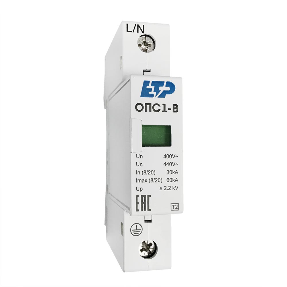 Ограничитель импульсных перенапряжений ОПС1 ETP является устройством защиты от импульсных перенапряжений (УЗИП), ограничения переходных перенапряжений и защиты от грозовых импульсов тока в сетях переменного тока 230/400В частотой 50 Гц.