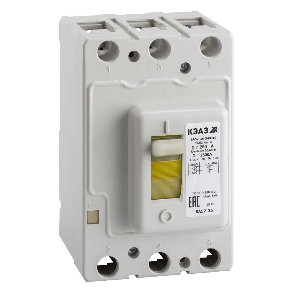 Силовой 3 полюсный автоматический выключатель переменного тока в литом корпусе на номинальный ток 100 А.
