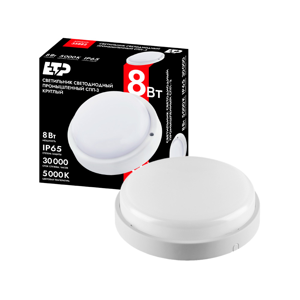 В отличии от светильников НПП (Лампа накаливания (Н); Потолочные (П); Промышленные (П)) светильник светодиодный СПП-3 8W 5000K IP65 ETP представляют собой энергоэффективный, безопасный и надежный аналог.