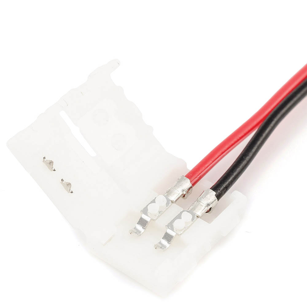 Коннектор 09-01 для светодиодной ленты с шириной подложки 8 мм служит прекрасной альтернативой в тех случаях, когда нет возможности паять. Чаще всего подложку шириной 8 мм можно встретить у ленты со светодиодами 3528, 2835 и 3014. С помощью коннектора можно подключить светодиодную ленту к источнику питания.
