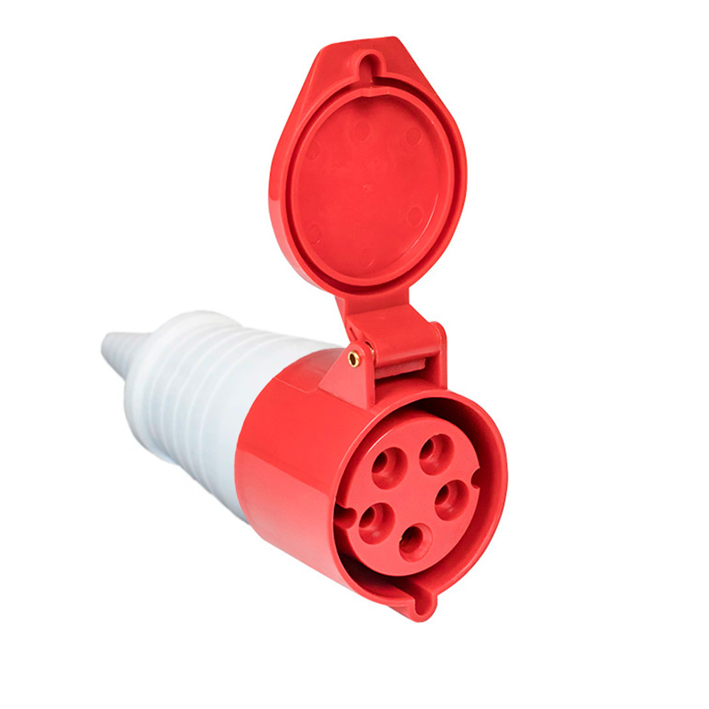 Максимальная нагрузка составляет 32А при напряжении 380В. Степень защиты IP44, что означает, что силовая розетка защищена от попадания пыли и твердых тел - не менее 1 мм – внутрь изделия, а также защищена от попадания брызг воды, падающих под любым углом.